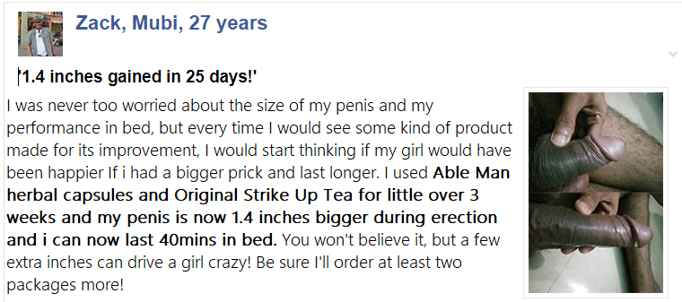 The ABLE MAN will actually make you active like never before and help pump blood through the nerves anytime you are ready for the action like we’ve in the picture sent by customers below: